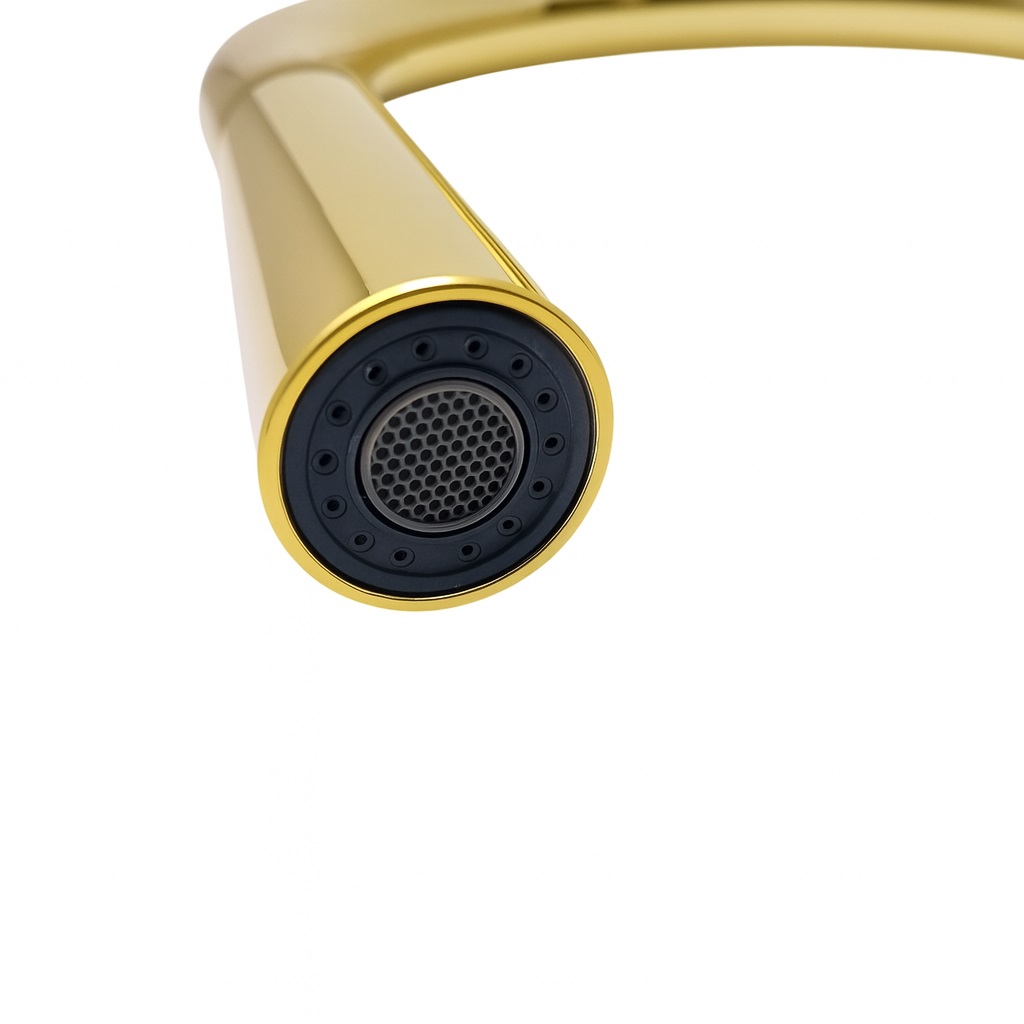 Elegancki i uniwersalny design – ponadczasowy kolor złoty pasuje zarówno do zlewozmywaków stalowych, granitowych, jak i emaliowanych.