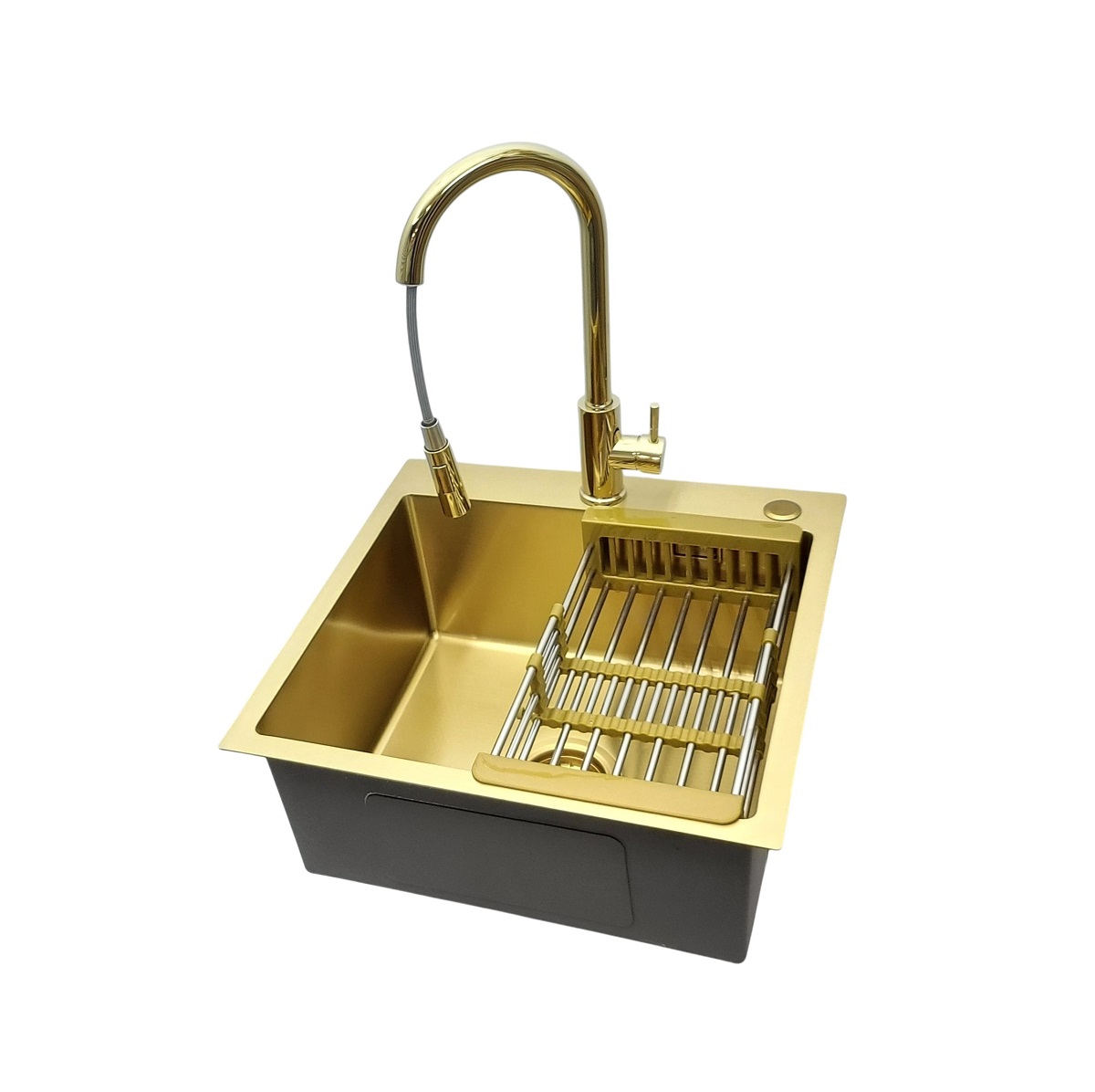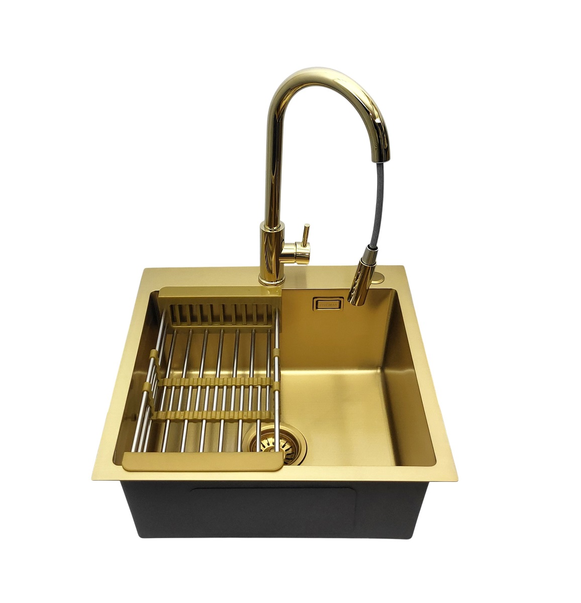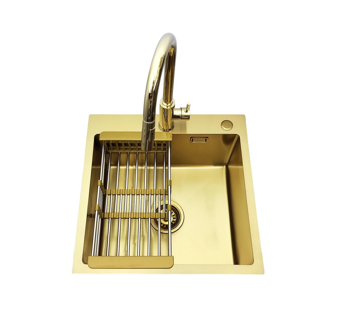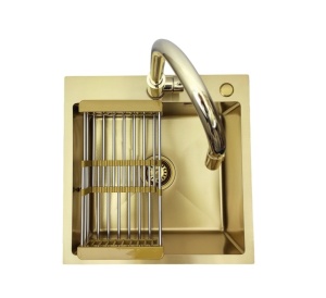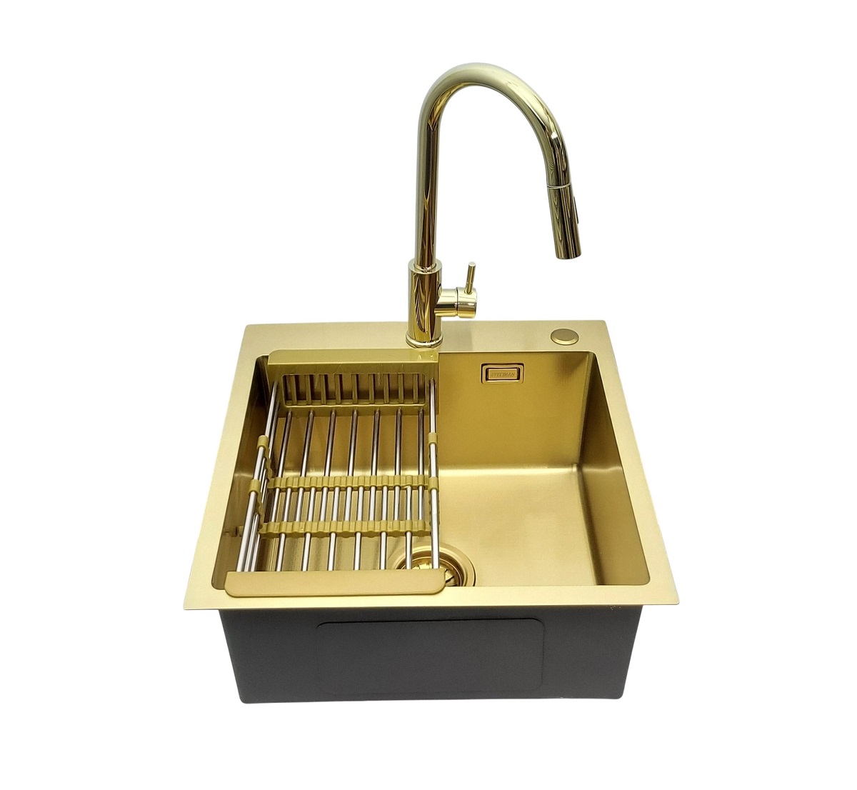 Zlewozmywak 5050 jednokomorowy + Koszyk + Bateria AFINO Gold