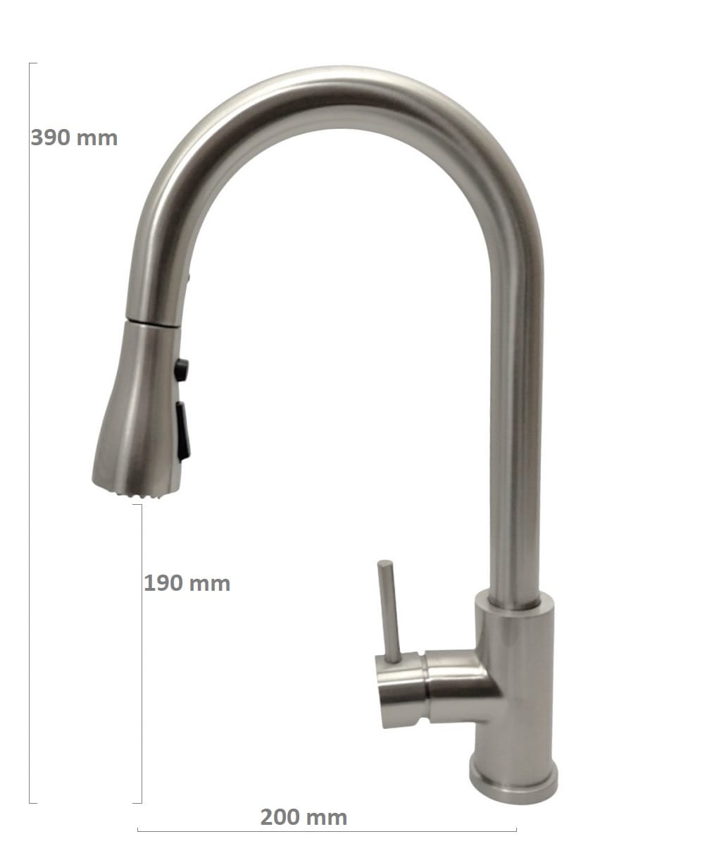 ✅ 3) Bateria kuchenna MIURA z wyciąganą wylewką Inox