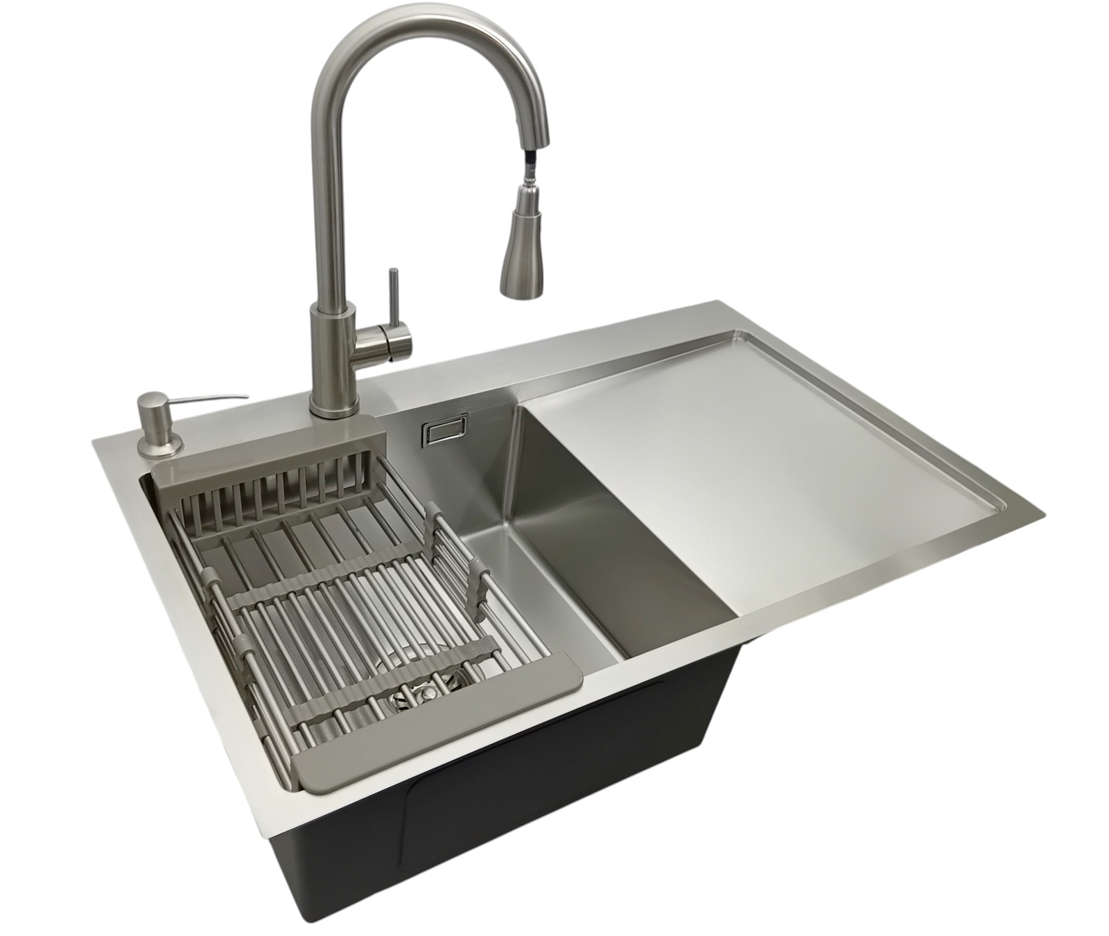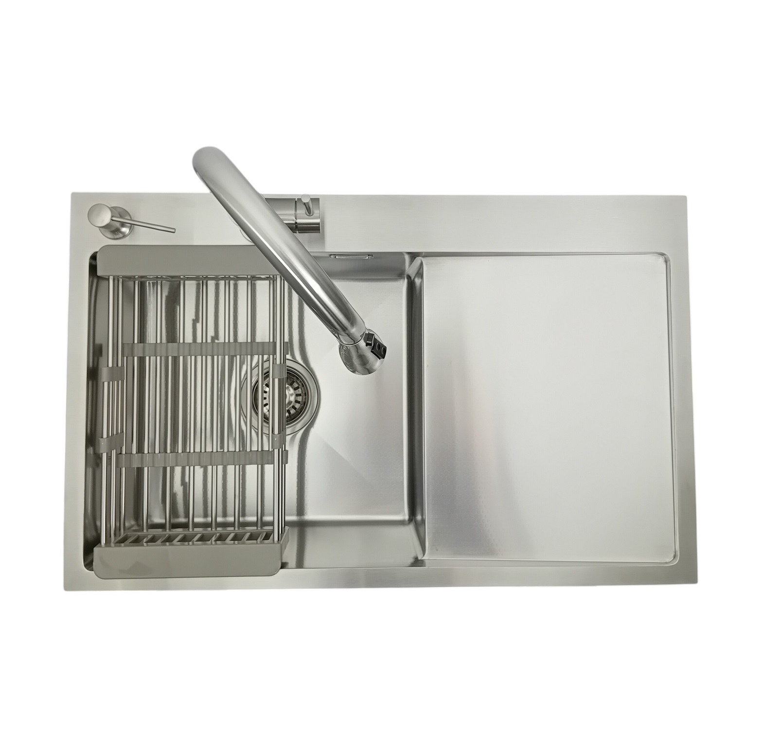 Zlewozmywak z ociekaczem 7849 Lewy + Dozownik + Bateria AFINO Inox + Koszyk teleskopowy