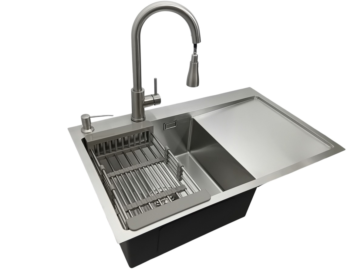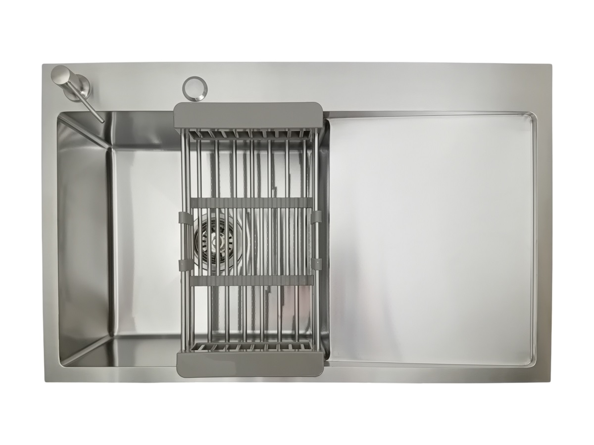 Zestaw Zlewozmywak stalowy 7849 Lewy INOX + Koszyk teleskopowy + Dozownik do płynów to kompleksowe rozwiązanie, które łączy trwałość, nowoczesny design i funkcjonalność. To inwestycja w wygodę codziennego użytkowania oraz elegancję Twojej kuchni.