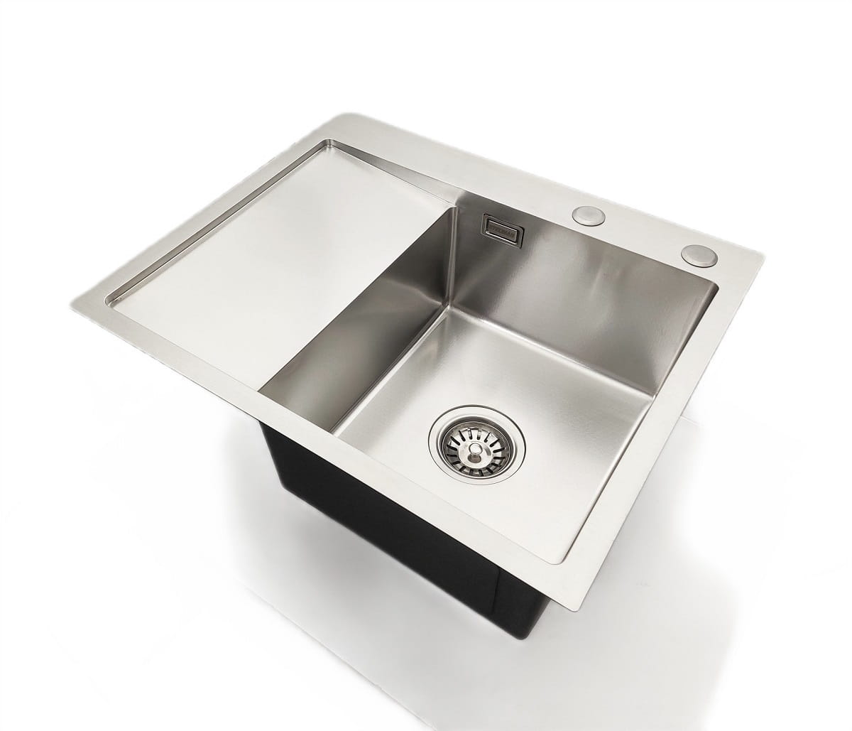 • Wysokiej jakości stal nierdzewna o grubości komory1 mm + 0,8 mm (powłoka wygłuszająca i antykondensacyjna) blatu 2.2 mm