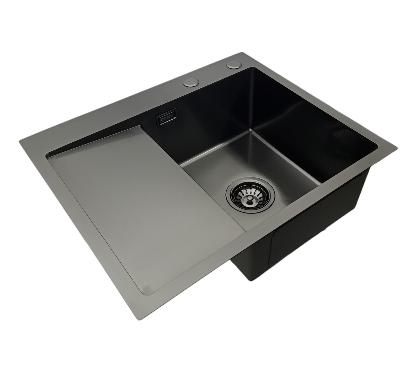 ✅ 1) Zlewozmywak stalowy 5849 Prawy CZARNY z wykończeniem plaster miodu