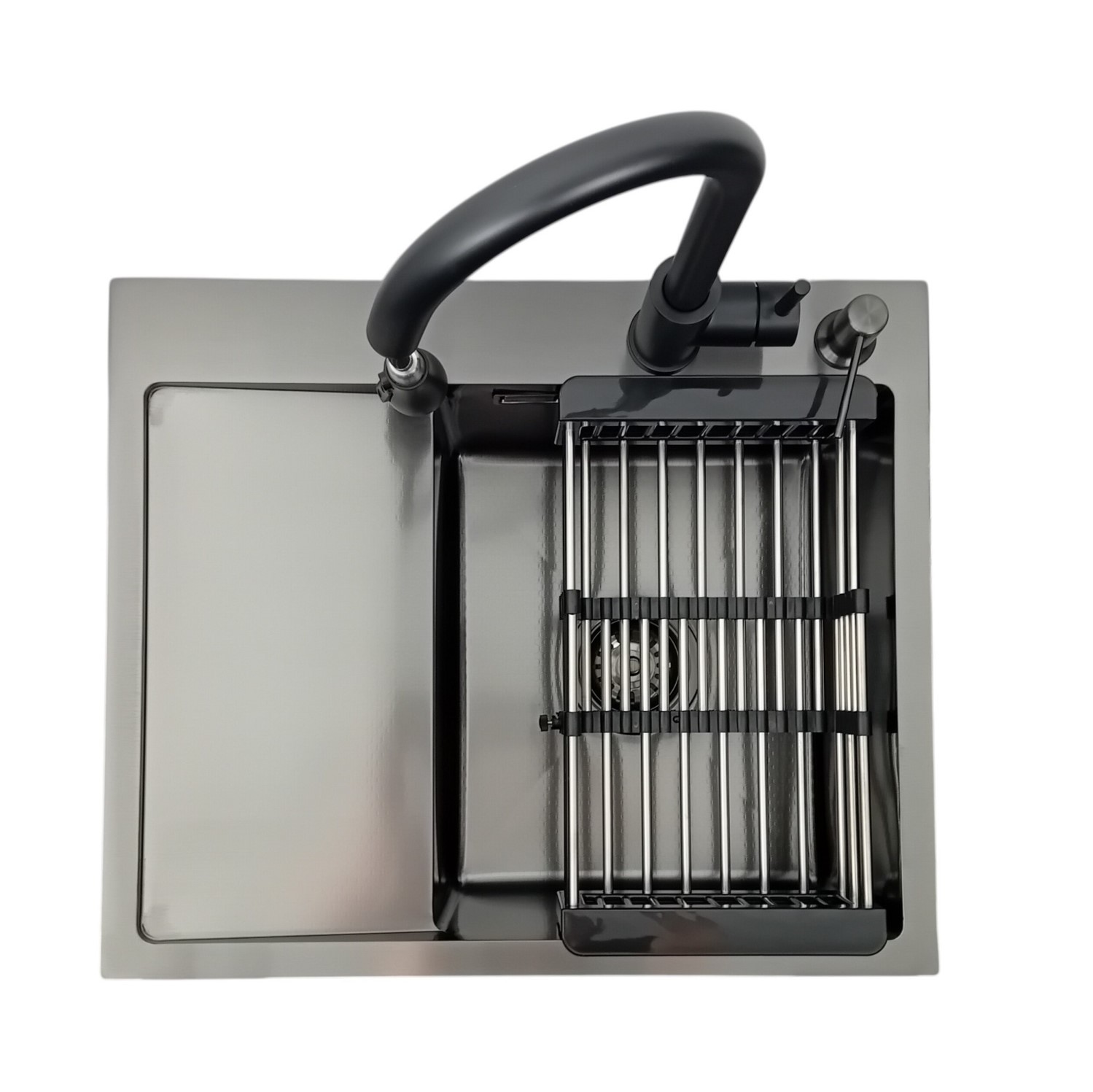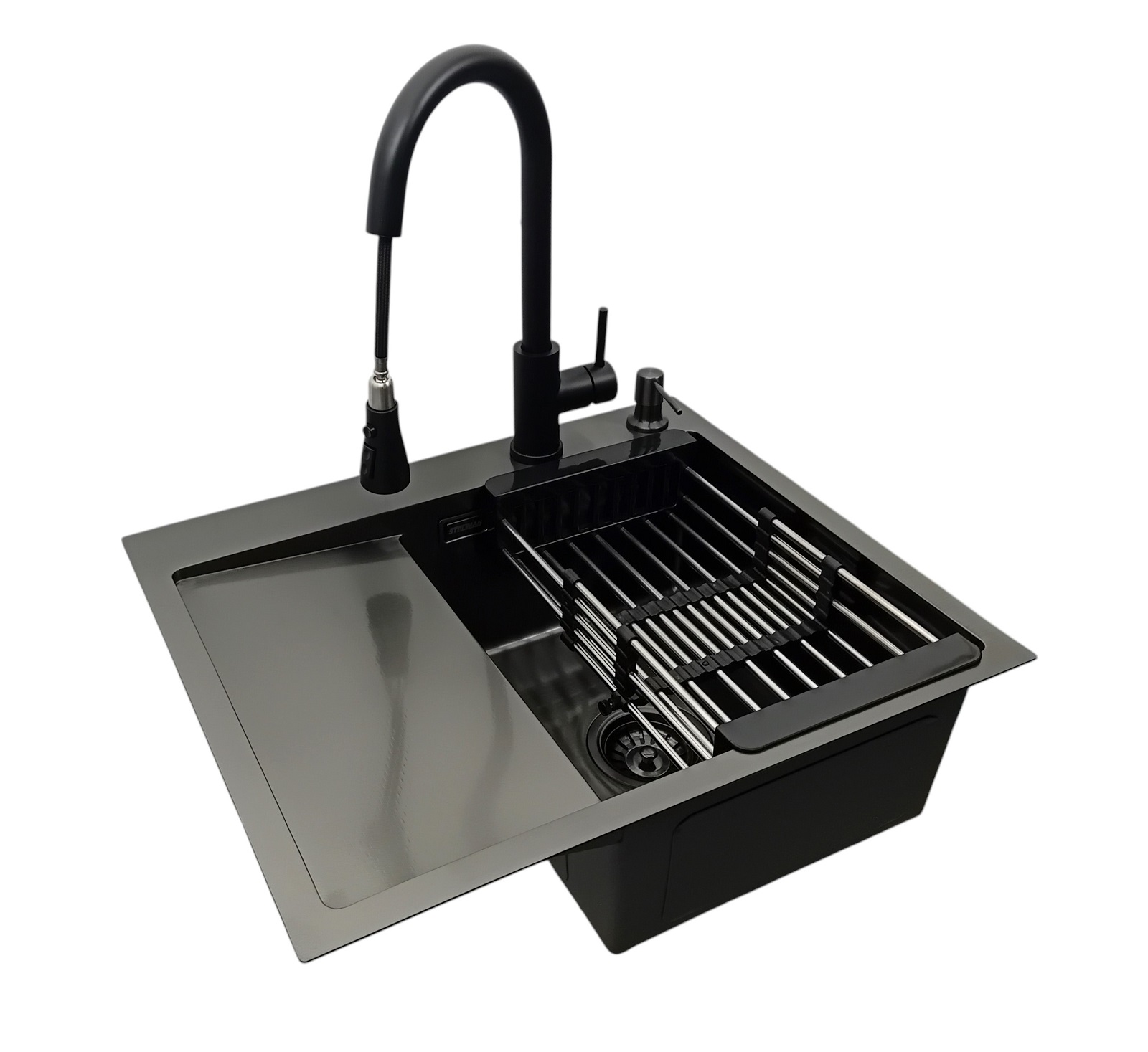 Zestaw Zlewozmywak stalowy 5849 Prawy CZARNY + Koszyk teleskopowy + Bateria MIURA + Dozownik to kompleksowe rozwiązanie, które łączy trwałość, nowoczesny design i funkcjonalność. To inwestycja w wygodę codziennego użytkowania oraz elegancję Twojej kuchni.