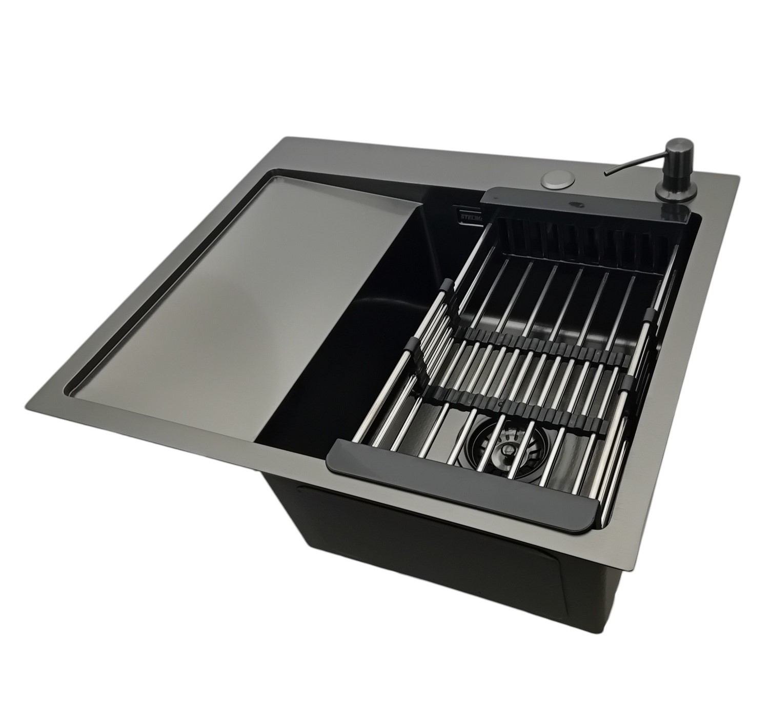 Zestaw Zlewozmywak stalowy 5849 Prawy CZARNY + Koszyk teleskopowy + Dozownik to kompleksowe rozwiązanie, które łączy trwałość, nowoczesny design i funkcjonalność. To inwestycja w wygodę codziennego użytkowania oraz elegancję Twojej kuchni.