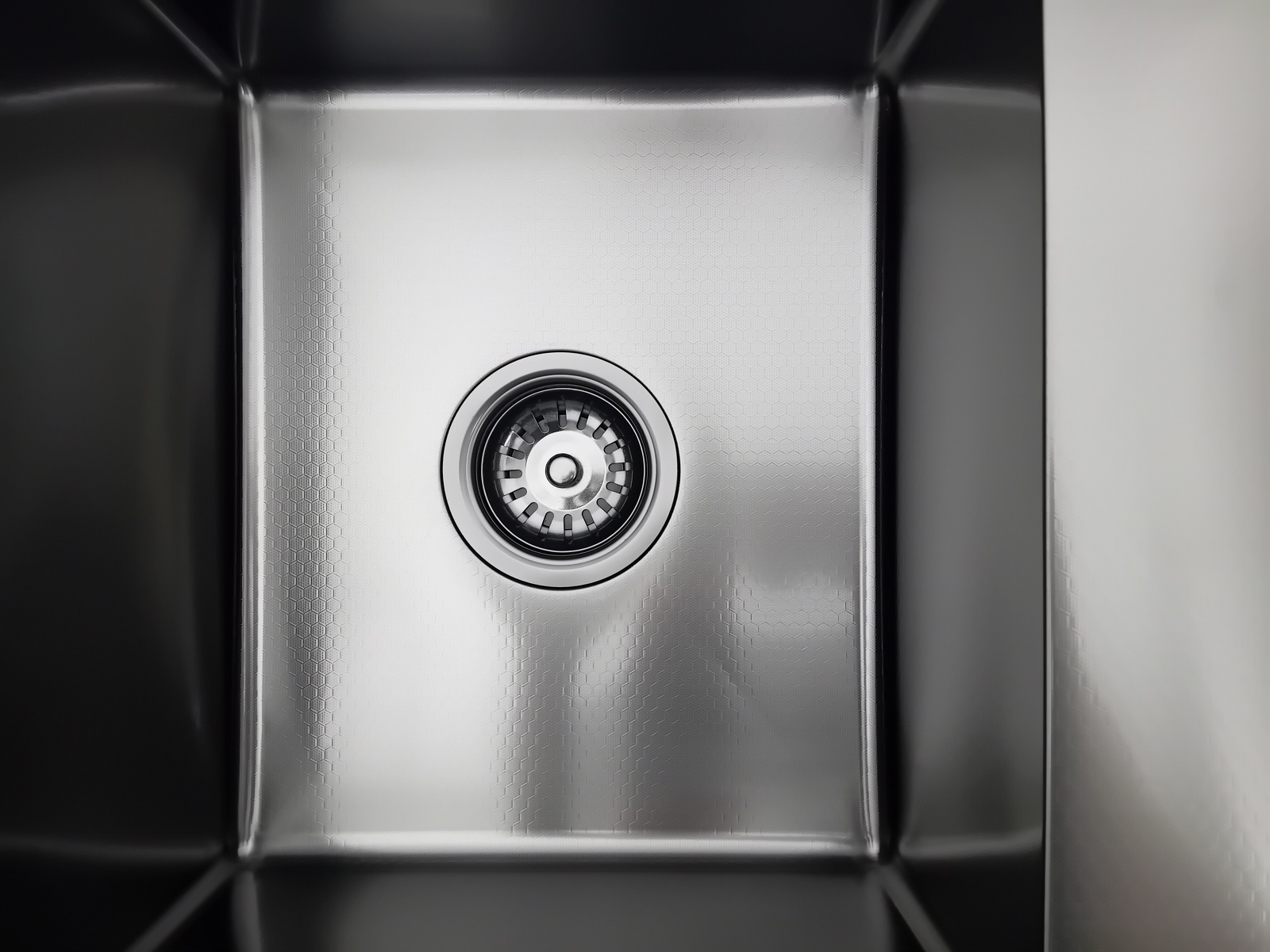 ✅ 1) Zlewozmywak stalowy 5849 Lewy CZARNY z wykończeniem plaster miodu